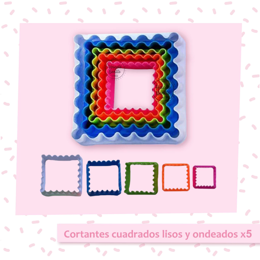 CORTANTES DE 2 DISEÑOS: CUADRADOS LISOS Y ONDEADOS X5.
