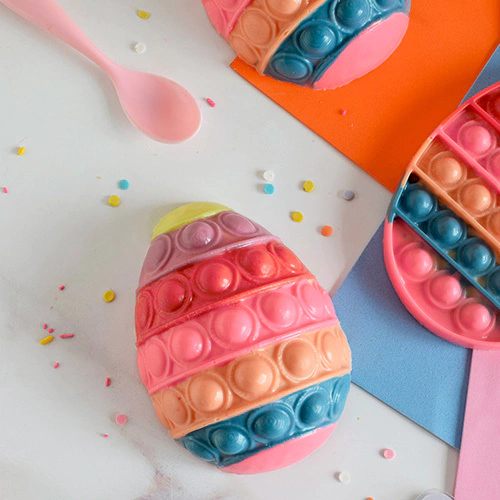 Set de 2 moldes para crear huevos de chocolate con motivo “Pop It”.
